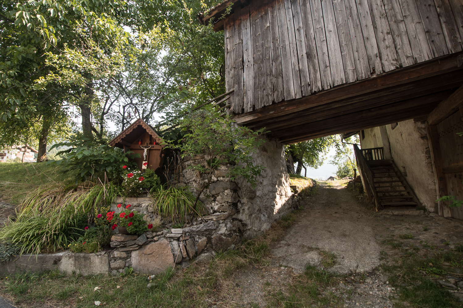Bei etwas kühlerem Wetter nach dem abendlichen Gewitter verlassen wir die Schneeberg-Hütte, vorbei an den alten Industrieanlagen zur Erzförderung. 1500 Höhenmeter geht es heute hinab und dann wieder ca. 800 m hinauf über Moos nach Pfelders ins Passeiertal. Wir passieren die Hälfte der Strecke des Romediusweg bei ca. 90 km Weglänge, wo uns das Bildstöckl des heiligen Romedius mit seinem Bären erwartet, nachdem es durch herrliche frische Wiesen abwärts gegangen ist. Die Füße erinnern uns schon an die Wegstrecke, aber es geht weiter, noch hinauf, bis wir nach einer wirklich langen Etappe den wohlverdienten Kaiserschmarrn genießen können.