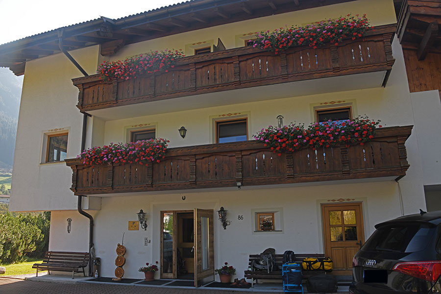 Ursprünglich eine alte Mühle, die der Großvater der Inhaberin Helga schon betrieb, riß er diese später ab und baute eine kleine Pension. Später neu gebaut und erweitert, präsentiert sich heute ein Wellnesshotel, das keine Wünsche offen läßt. Unglaublich freundlich werden wir empfangen, und dieses Umsorgt-Werden tut uns gut, rufen doch vor allem die geschundenen Füße nach Ruhe. Hier legen wir eine Pause ein und bleiben 2 Nächte – absolut empfehlenswert nach unserer Erfahrung, sich zwischendurch auf so einer Alpenüberquerung mal eine Auszeit zu gönnen. Umso leichter fällt dann das erneute Loslaufen am nächsten Tag…. Von hier aus geht es auf den Schneeberg. Dort befindet sich eines der ehemals höchstgelegenen Bergwerke Europas, das vom Mittelalter bis 1985 betrieben wurde. Es gibt viel zu sehen!