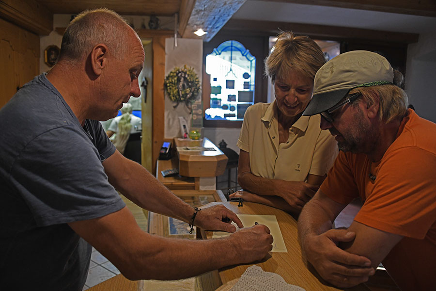 Von der Trunahütte bergauf und dann bergab am Lichtsee vorbei führt uns der Weg zu Almi’s Berghotel. Die Wirtsleute Seppi und Burgi haben diesem wunderschönen Hotel ihren individuellen Stempel aufgedrückt! Brausen die meisten Leute immer nur auf der Brenner-Autobahn gen Süden, merken sie gar nicht, welche Schätze sich in den Seitentälern verbergen, wie hier im Obernberger Tal. Ursprünglich stand hier ein Dorfgasthaus, und 2007 übernahmen dann Seppi und Burgi das Berghotel, aus dem sie einen wunderschönen Platz für Naturliebhaber geschaffen haben. Von hier machen wir uns auf, die Grenze nach Südtirol, den Alpenhauptkamm, zu überschreiten.
