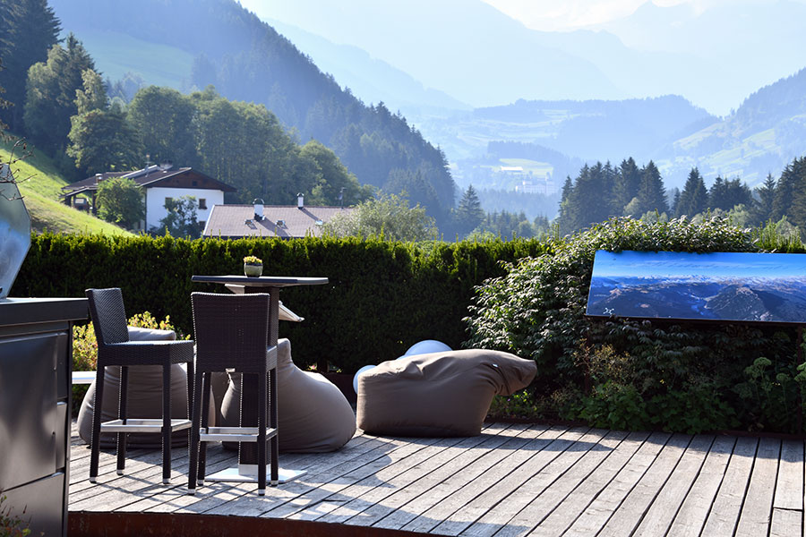 Nach einer langen Etappe bei großer Hitze fühlt es sich hier an wie heimkommen! In diesem gemütlichen Hotel sitzt man in einem urigen Garten und fühlt sich einfach nur wohl. Viel mit Holz gestaltet, fügt sich das Hotel einfach grandios in diese Bergwelt ein. Auch die Umgebung ist einen Besuch wert, z. B. das Kloster Maria Waldrast. Auf Empfehlung des Chefs des Hauses laufen wir am nächsten Tag über die Blaser-Hütte, von wo aus wir den super Ausblick auf die Landschaft genießen.