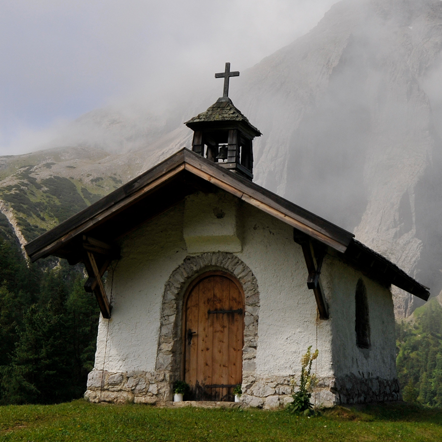 Für uns die gemütlichste Hütte im Karwendel – geprägt von den urigen Wirtsleuten Evelyne und Horst Schallhart liegt diese Hütte zwar an den klassischen Weitwanderwegen München-Venedig und Adlerweg, aber da läuft ja jeder…………! Wir haben die Alm als Ausgangspunkt genutzt, um das Karwendel zu durchqueren, und dann auf dem Romediusweg weiter zu laufen. Wenn man abends auf der Terrasse sitzt und der Himmel nicht nur blau ist (was ja sonst für uns Fotografen langweilig wäre), so schmiegt sich die 1946 errichtete Kapelle in die Landschaft ein, als wäre sie schon immer dort gestanden. Nette Wirtsleute, super Essen, und ein fantastischer Ausblick – was will man mehr!